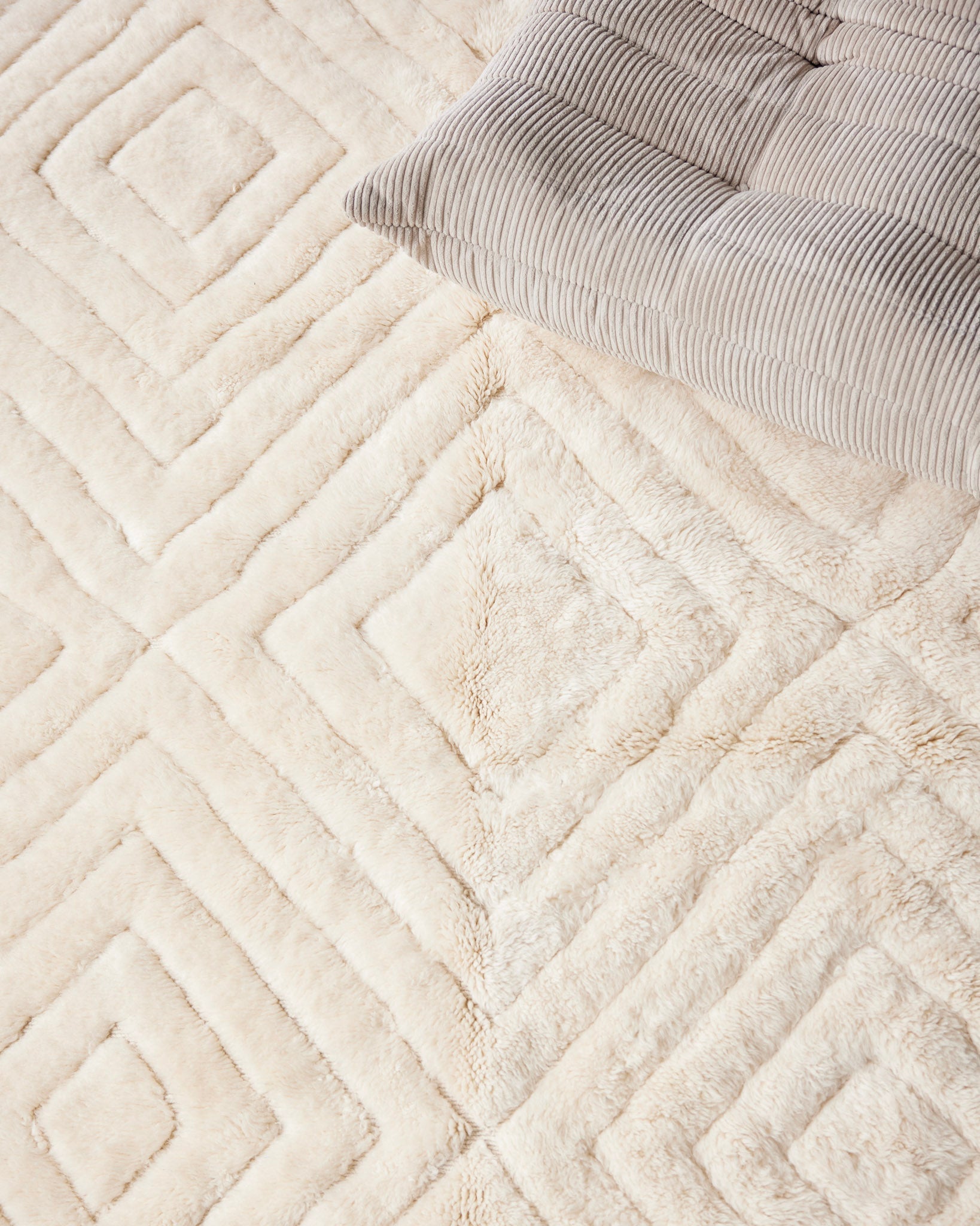 With softly defined geometric diamonds, offering a tactile and light presence
